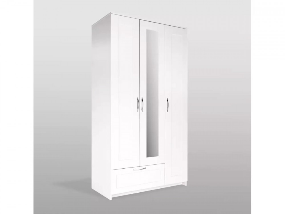 Шкаф 3 двери и 1 ящик 117х59х220 Сириус белый с 1 зеркалом