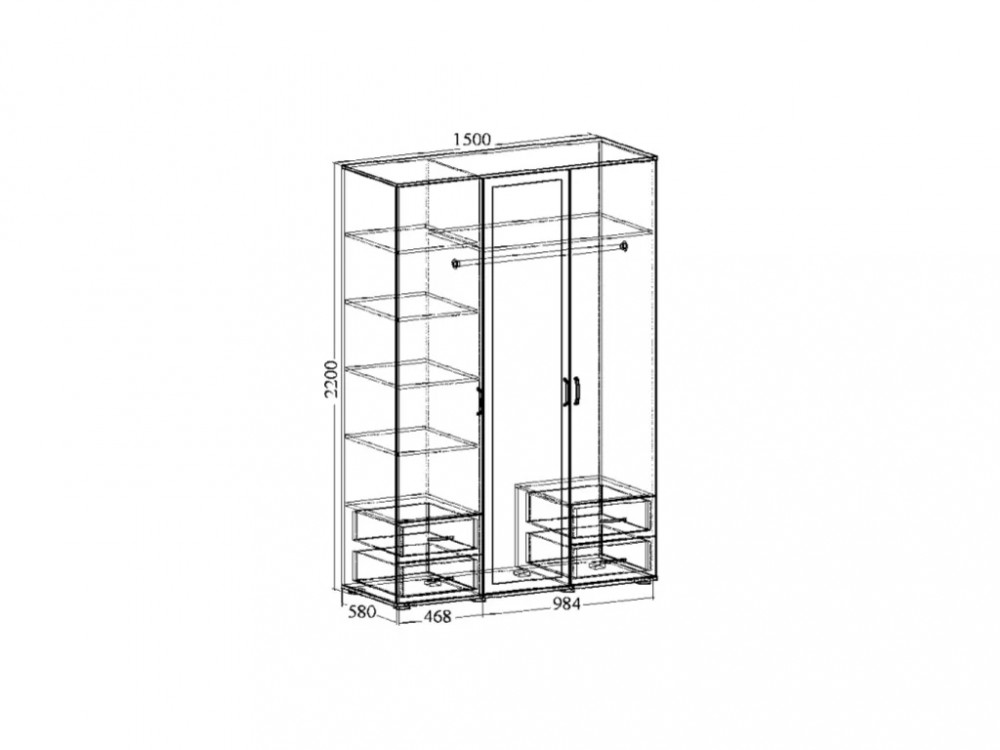 Размер (ДхВхШ): 1500х2200х580 мм