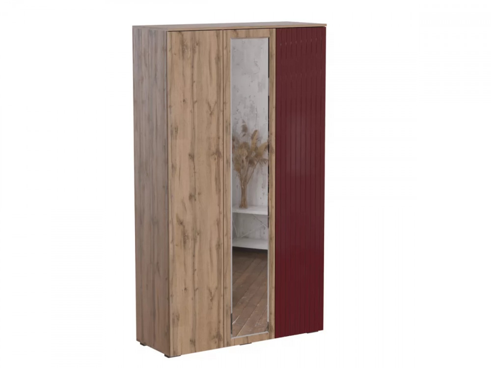 Шкаф 3-х ств. МС Ливерпуль Дуб Вотан/Бордо Глянец