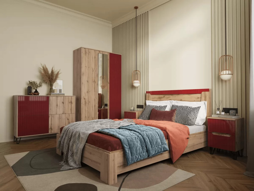 Шкаф 2-х ств. с 2 ящиками МС Ливерпуль Дуб Вотан/Бордо Глянец