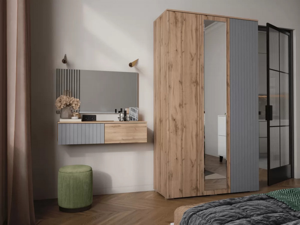 Шкаф 3-х ств. МС Ливерпуль Дуб Вотан/Графит Софт