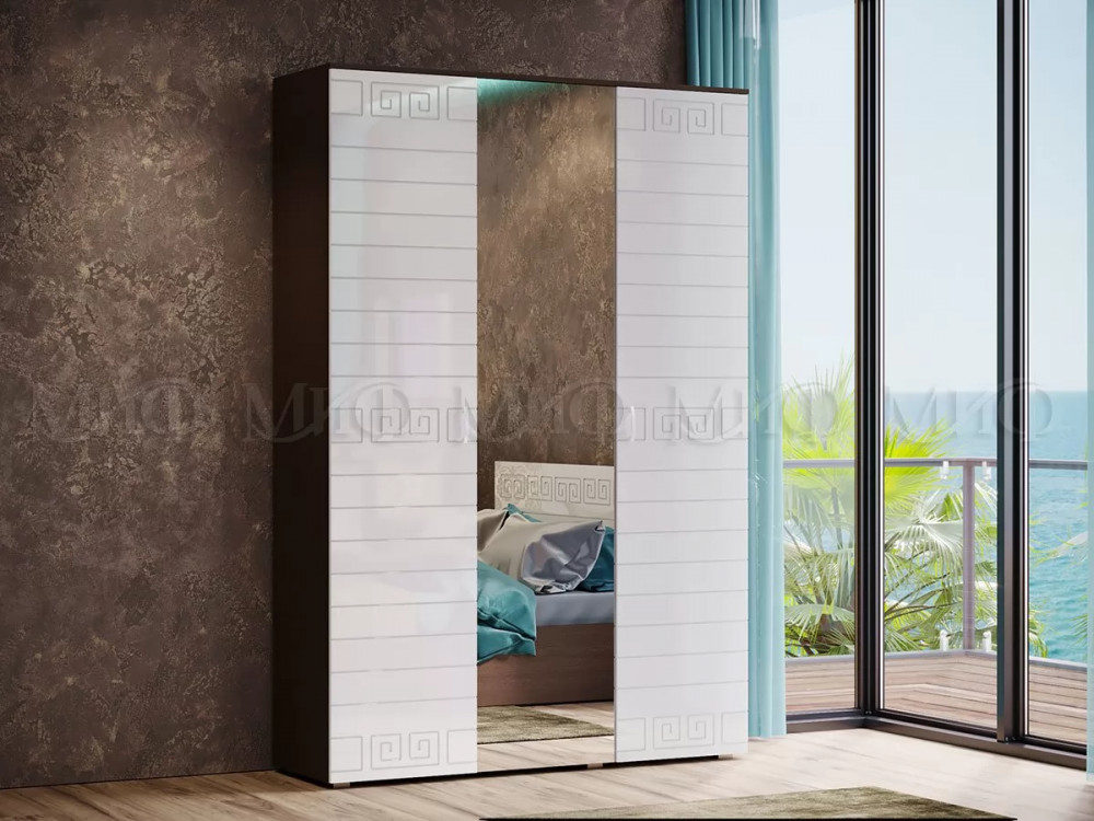 Шкаф 4 двери и 1 ящик 117х59х220 Сириус белый с 2 зеркалами