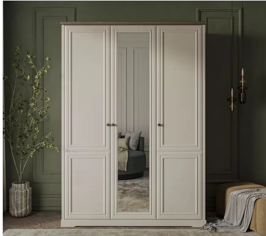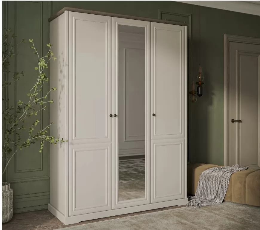 Шкаф Мале угловой с зеркалом, дуб галифакс белый с обкладкой