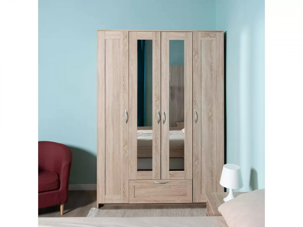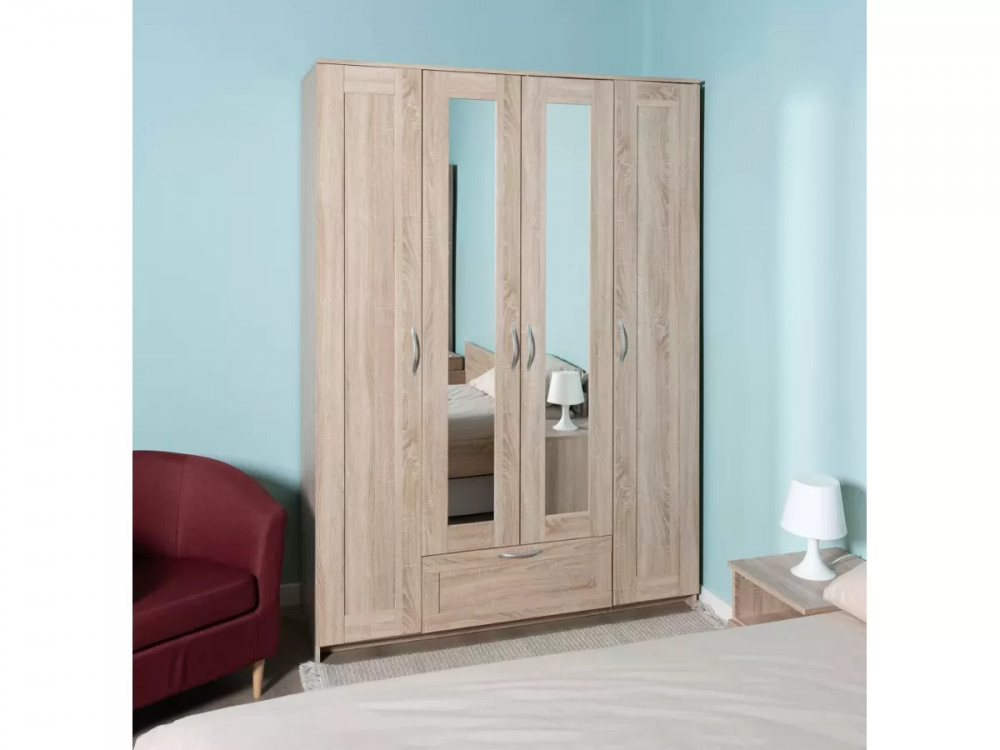 Шкаф 4 двери и 1 ящик 117х59х220 Сириус Дуб Сонома с 2 зеркалами
