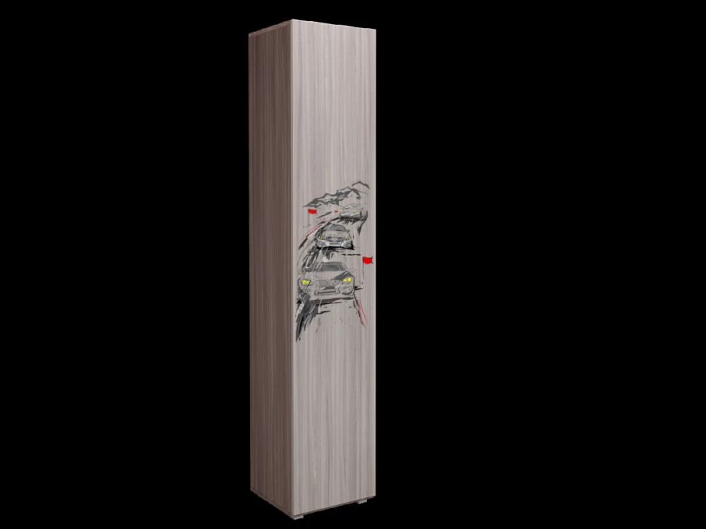 Пенал для белья из коллекции мебели для детской "Форсаж" комплектуется полками. Фасад декорирован фотопечатью.