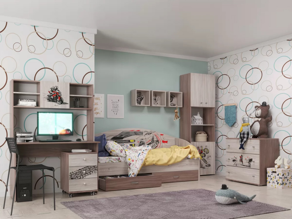 Мебель с фотопечатью придает индивидуальность любой комнате. Яркий динамичный рисунок "Форсаж" непременно понравится активным подросткам.