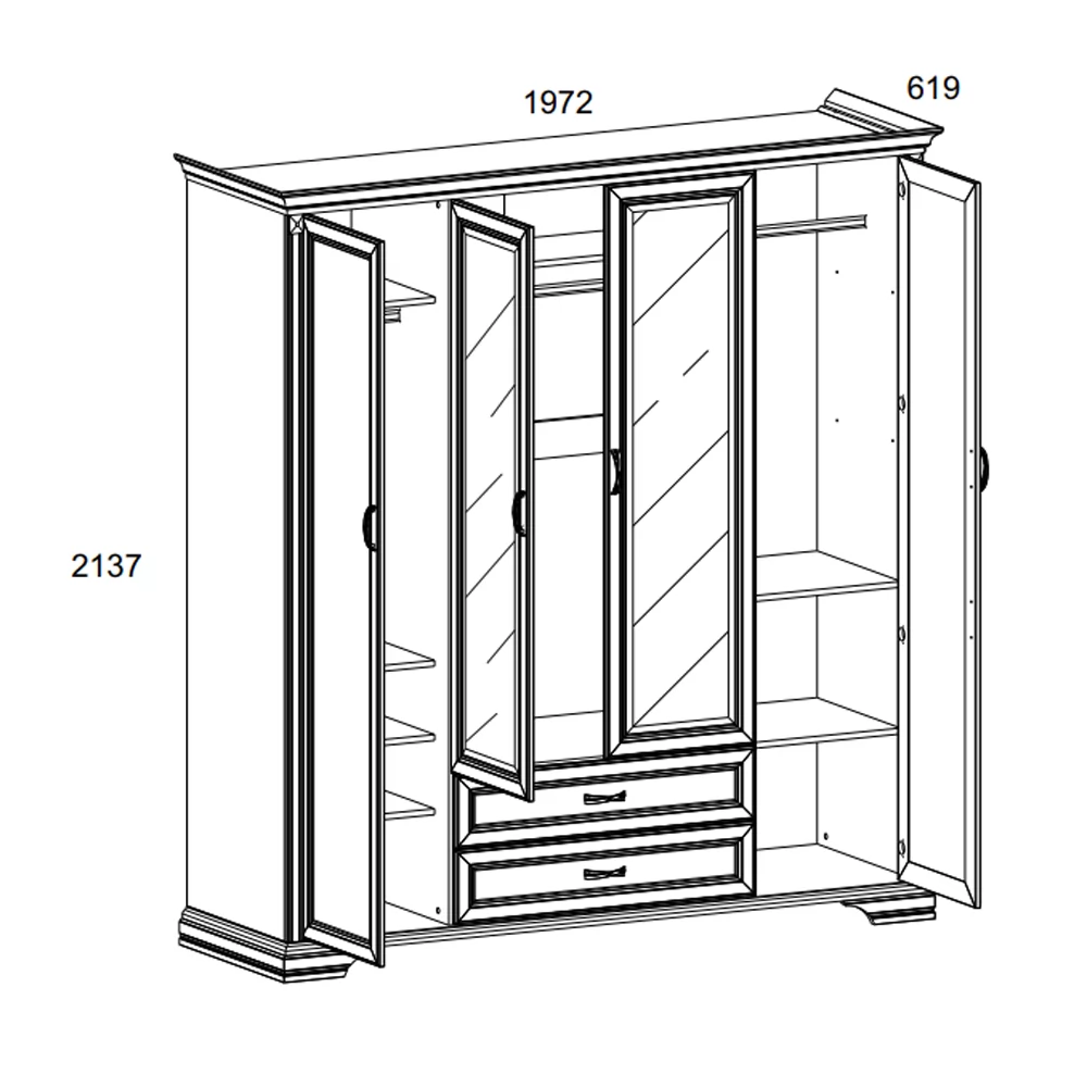 | Размер (ВхШхГ): | 2137x1972x619 мм |