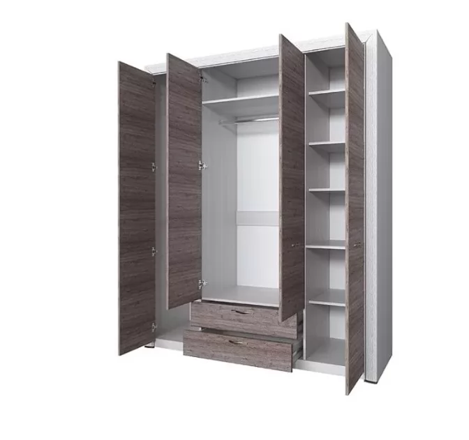 ГРЕТТА Шкаф 4С2Я 4дв, 2ящ. (ш1300*г507*2120мм), ЛДСП дуб крафт белый-антрацит/ЛДСП дуб крафт белый