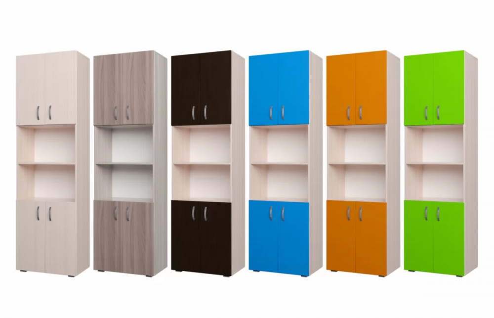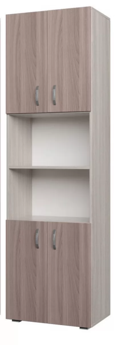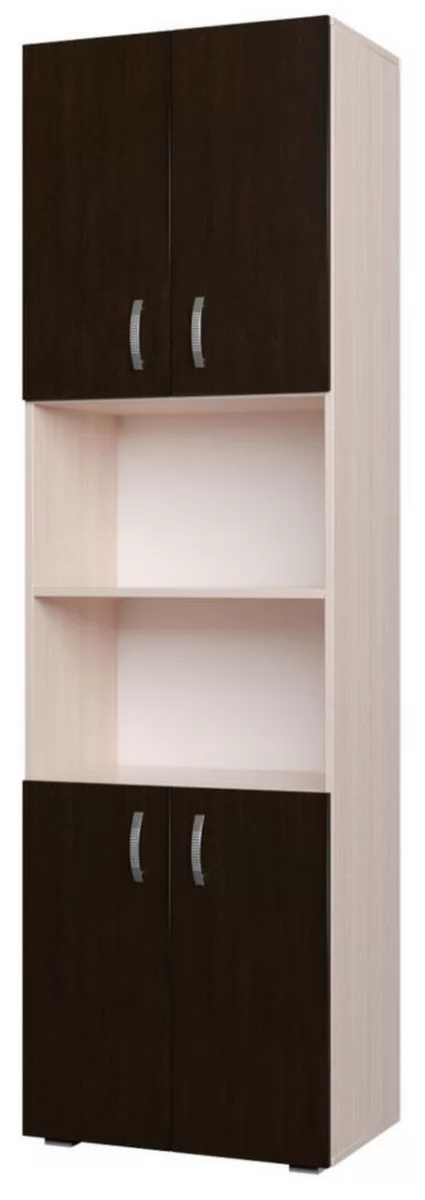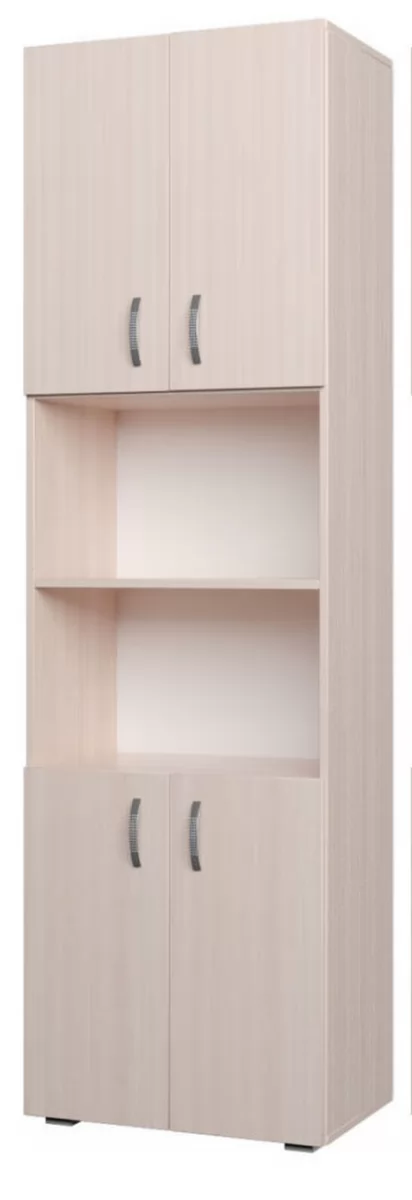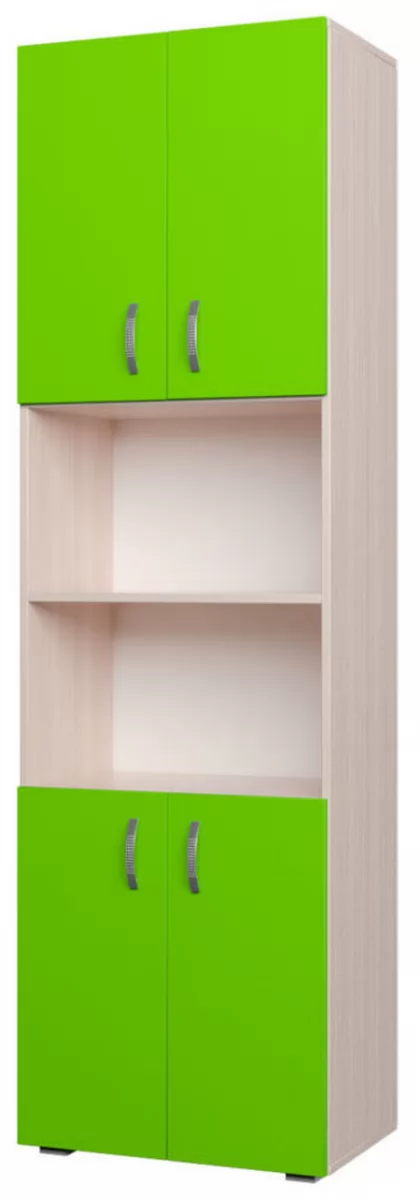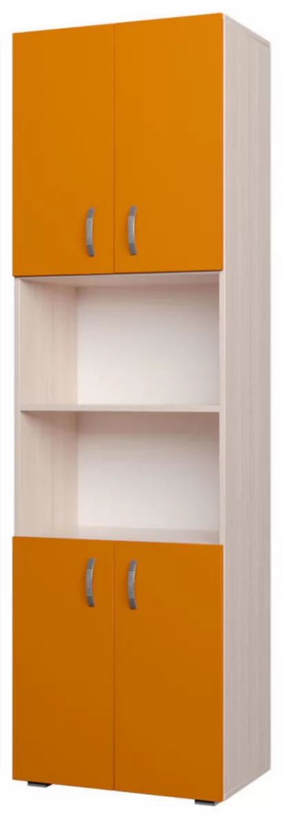 Функциональный шкаф "ДМ" 600 4Д имеет 2 отделения с распашными дверцами и открытые полки. Шкаф можно использовать для хранения игрушек, книг или учебных принадлежностей в детской комнате или как стеллаж для документов в кабинете.