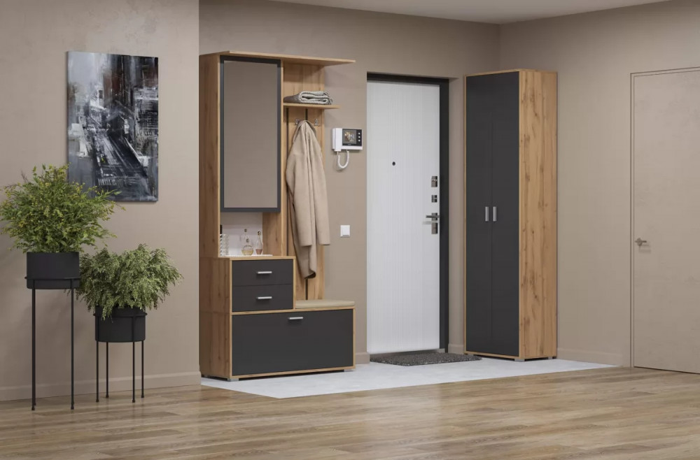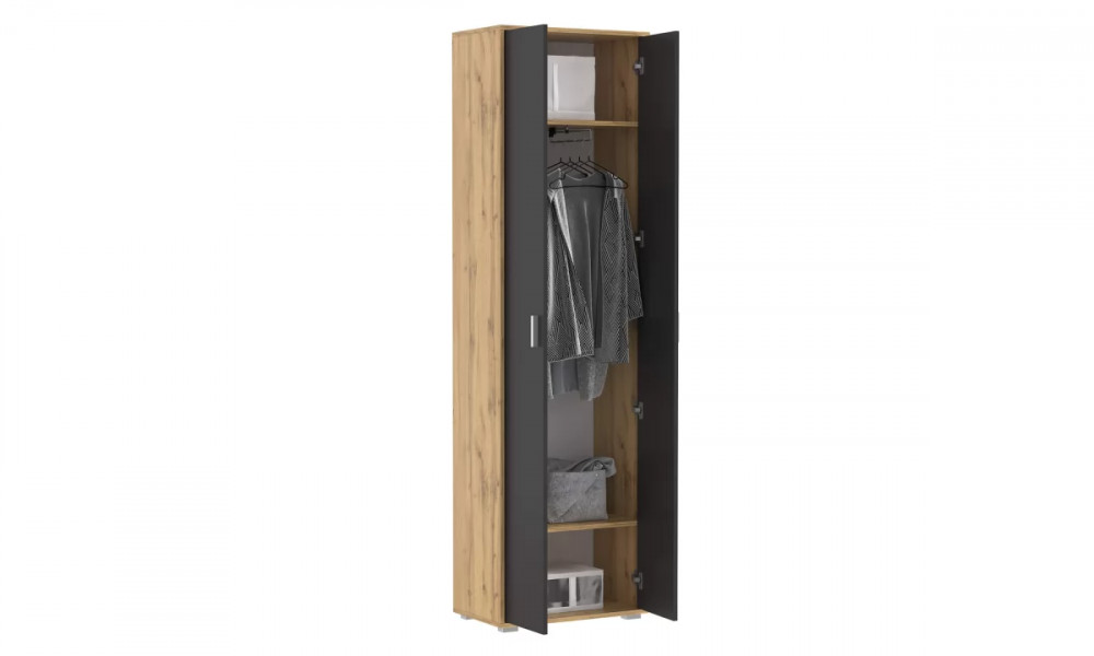 Шкаф 65.07 Антре (дуб вотан/диамант серый/ДВПО белый) совмещает благородную привлекательную эстетику с практичностью и хорошим функционалом. Продуманный дизайн уместно дополнит созданный интерьер и органично впишется в любое помещение.
