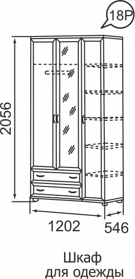 | Размер(ДхВхШ): | 1202х2086х546 мм |