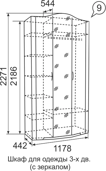 Шкаф для одежды 3-х дверный «Виктория» №9