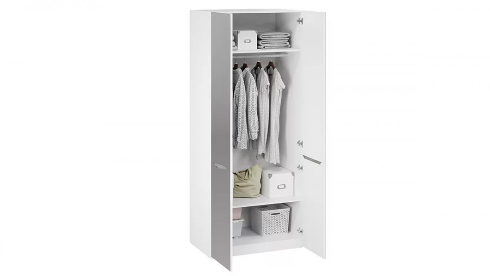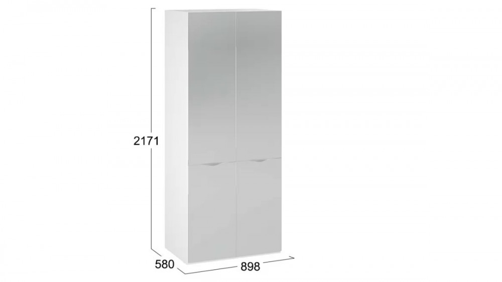 Шкаф для одежды (580) с 2 зеркальными дверями «Глосс» Белый Жемчуг, Белый глянец