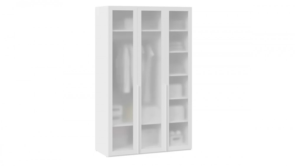 Шкаф для одежды (580) с 3 стеклянными дверями Белый Жемчуг/Стекло сатин белое