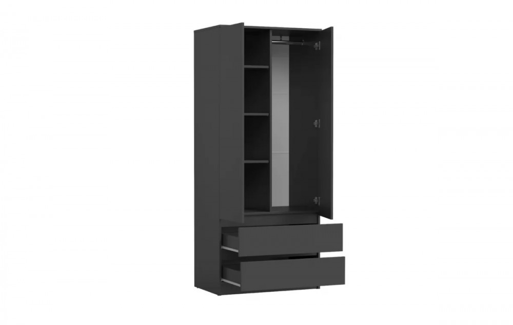 Конструкция позволяет организовать идеальное пространство для хранения вещей: одежда размещается на удобной штанге, мелочи аккуратно располагаются на полках, а аксессуары удобно хранятся в глубоких выдвижных ящиках.