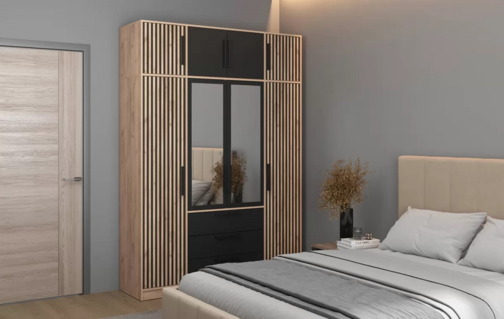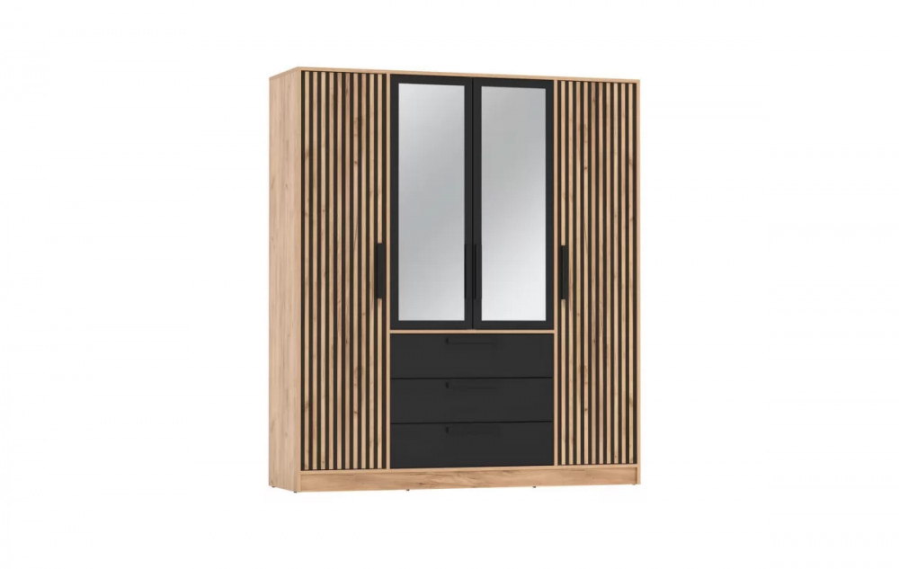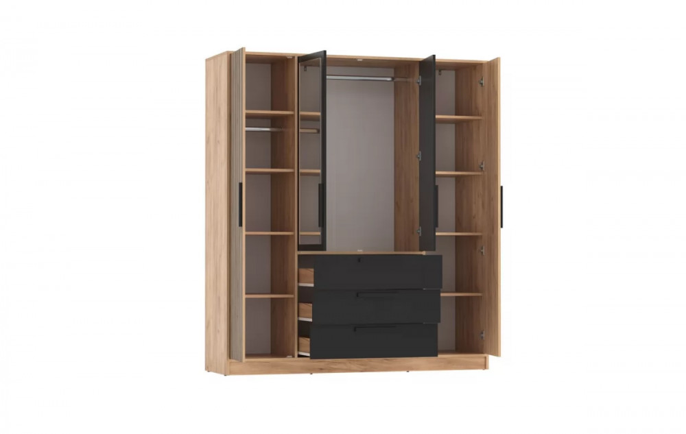 Шкаф для одежды 83.07 Вегас (4-х дв.) с зеркалом (ЛДСП Дуб золотой / ЛДСП Черный)