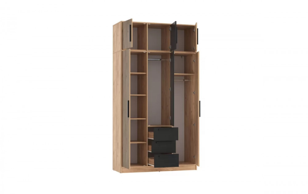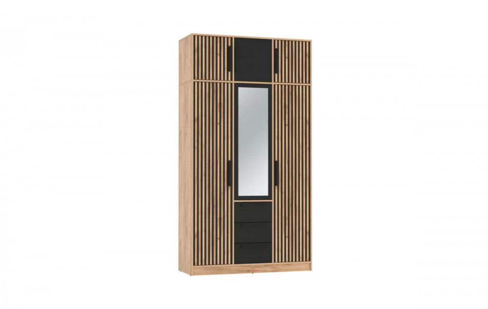 Шкаф для одежды 83.08 Вегас (3-х дв.) с зеркалом (ЛДСП Дуб золотой / ЛДСП Черный)