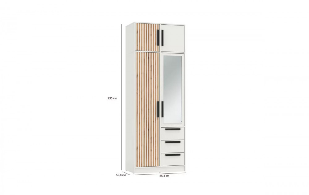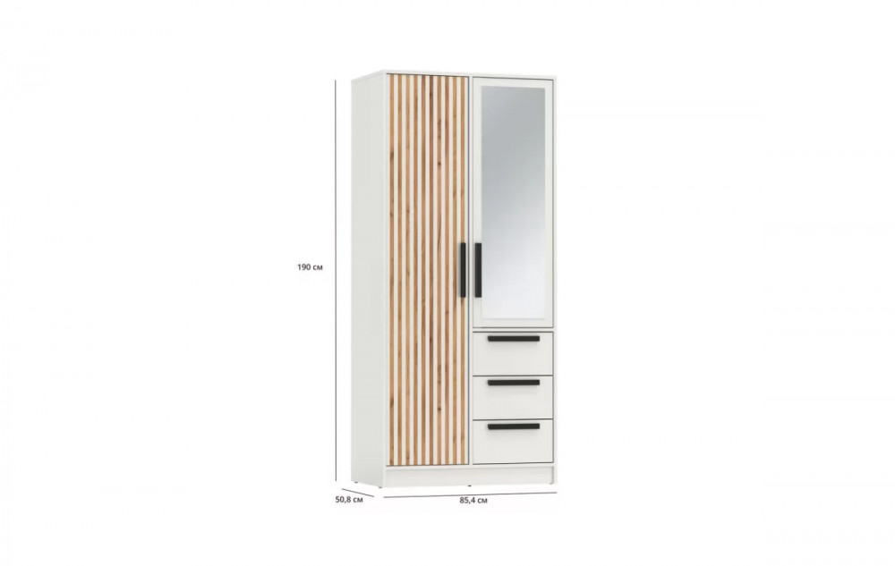 Шкаф для одежды 83.08 Вегас (3-х дв.) с зеркалом (ЛДСП Белый)