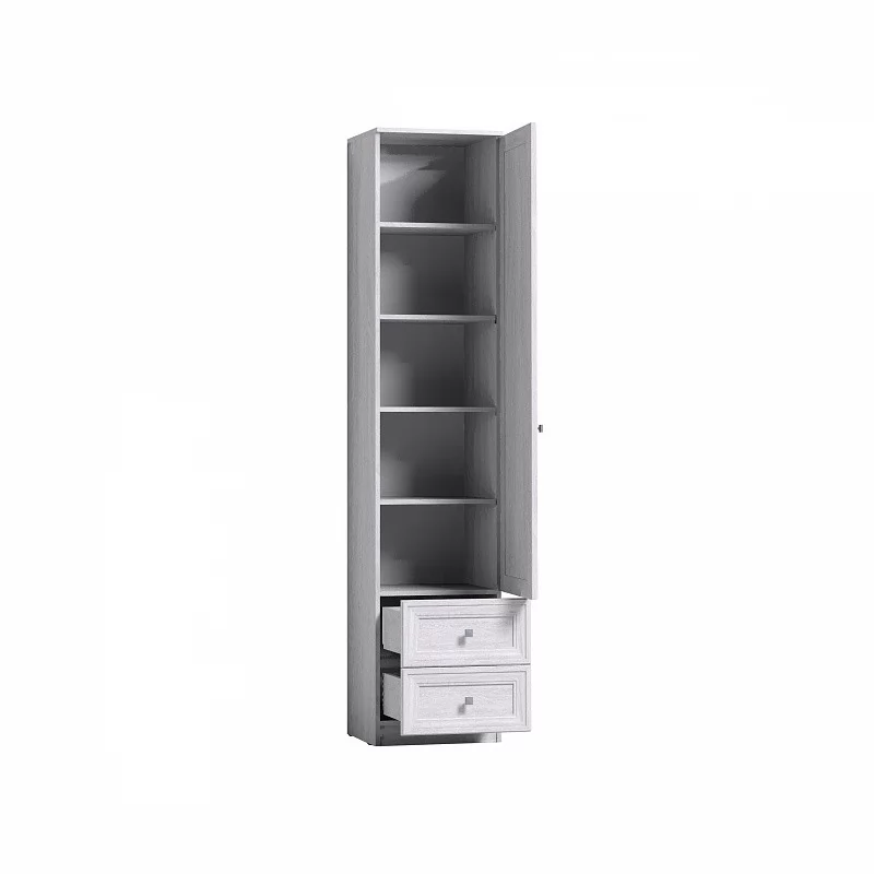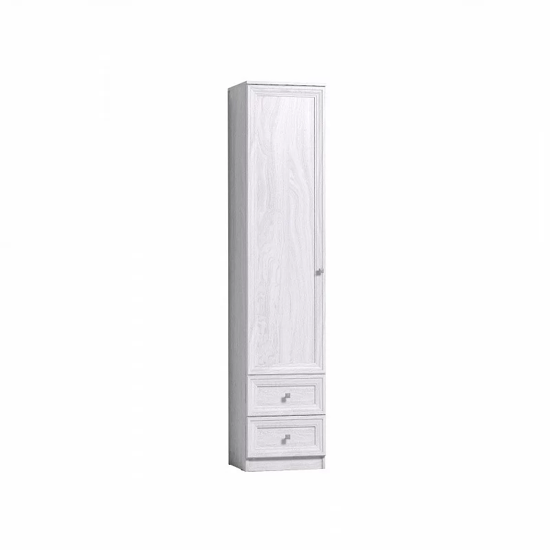 Одностворчатый шкаф для одежды и белья PAOLA 15 – функциональный и компактный элемент современной корпусной мебели. Благодаря небольшим габаритным размерам он не займет много места в гостиной, а благодаря светлому декору комната не будет казаться загроможденной. Конструкция шкафа предусматривает наличие 4-х, регулируемых по высоте, полок и 2 выдвижных ящика. Ящики оснащены шариковыми направляющими полного выдвижения и способны выдержать нагрузку до 15 кг. Для надежности шкаф обязательно крепится к стене на подвесы.