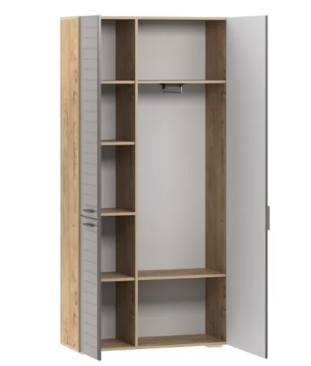 Шкаф для одежды Livorno НМ 013.36 поможет систематизировать хранение одежды в спальне или прихожей. Отдел с выдвижной штангой и двумя полками предназначен для хранения одежды на вешалках-плечиках, а также коробок с обувью. В левой части модуля расположена секция с полками, содержимое которых надежно защитят от попадания грязи и пыли глухие фасады. Наличие двух створок позволит разместить сезонную и повседневную одежду в разных частях данного отдела. Во время поисков понадобится открыть только ту дверцу, за которой находится нужная в данный момент вещь, что предотвратит путаницу.