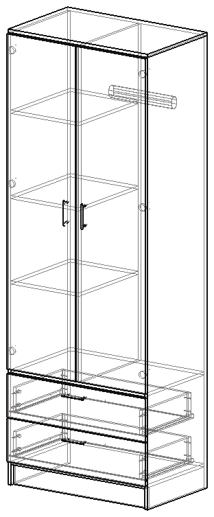 Шкаф укомплектован штангой для одежды, 3 полками 2 ящиками для белья.