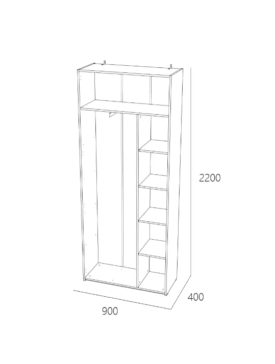 | Размер (ШхГхВ): | 900х400х2200 мм |