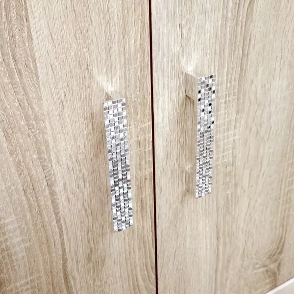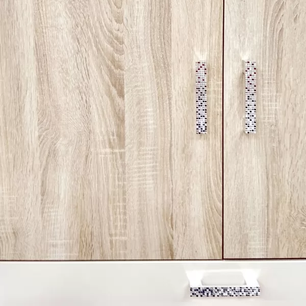 Яркий дизайн позволяет сделать этот шкаф центром композиции или акцентным пятном. Фасады с богатой древесной текстурой отлично сочетаются с бежевыми и предлагают своеобразную игру материалов, создавая интересный дизайн помещения.