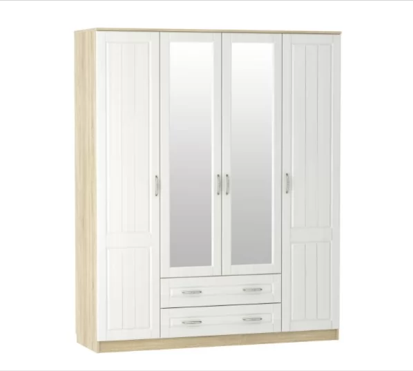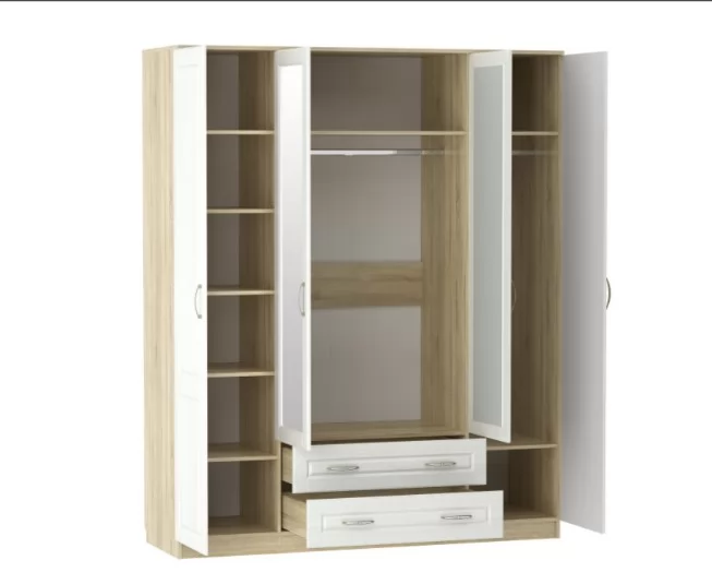 Вместительный шкаф Оливия НМ 011.84 Х поможет организовать место хранения вещей всей семьи. Шкаф имеет две секции со штангами, что позволяет рассортировать вещи по необходимым характеристикам: взрослая и детская; зимняя и летняя и т.д. Отдел с полками оптимален для размещения повседневной одежды, а два выдвижных ящика помогут раздельно хранить белье и аксессуары. Две центральных дверцы декорированы зеркалами, которые визуально увеличивают пространство комнаты и делают процесс сборов максимально удобным.