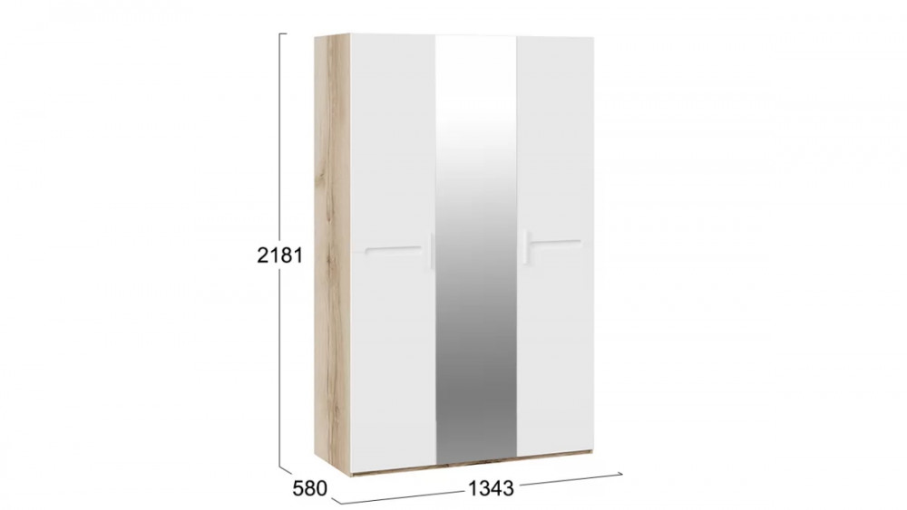 Шкаф комбинированный с 3 дверями «Фьюжн» Дуб Делано, Белый глянец