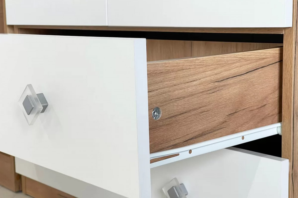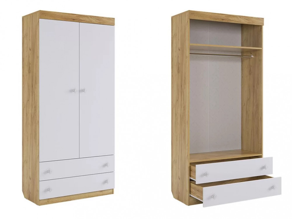 Шкаф комбинированный с ящиками 2-створчатый Форсаж дуб крафт золотой/белый