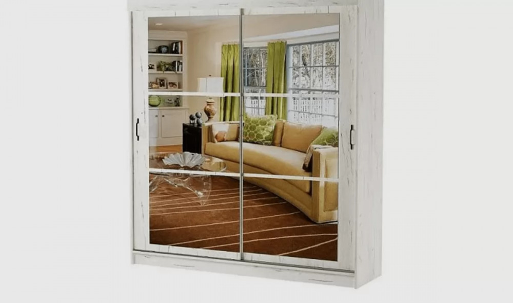 Шкаф-купе ОРИОН (ш2000*г600*в2200мм), ЛДСП дуб крафт белый, зеркало