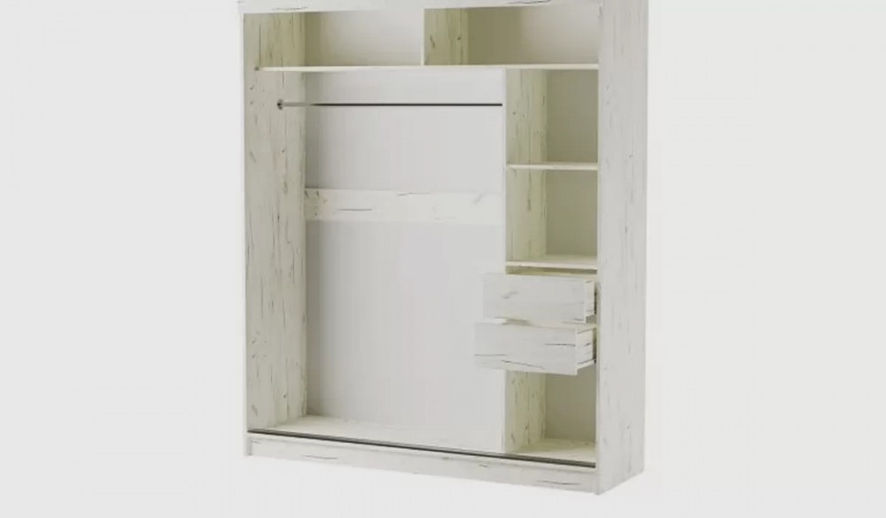Шкаф-купе ОРИОН (ш1500*г600*в2200мм), ЛДСП дуб крафт белый, зеркало