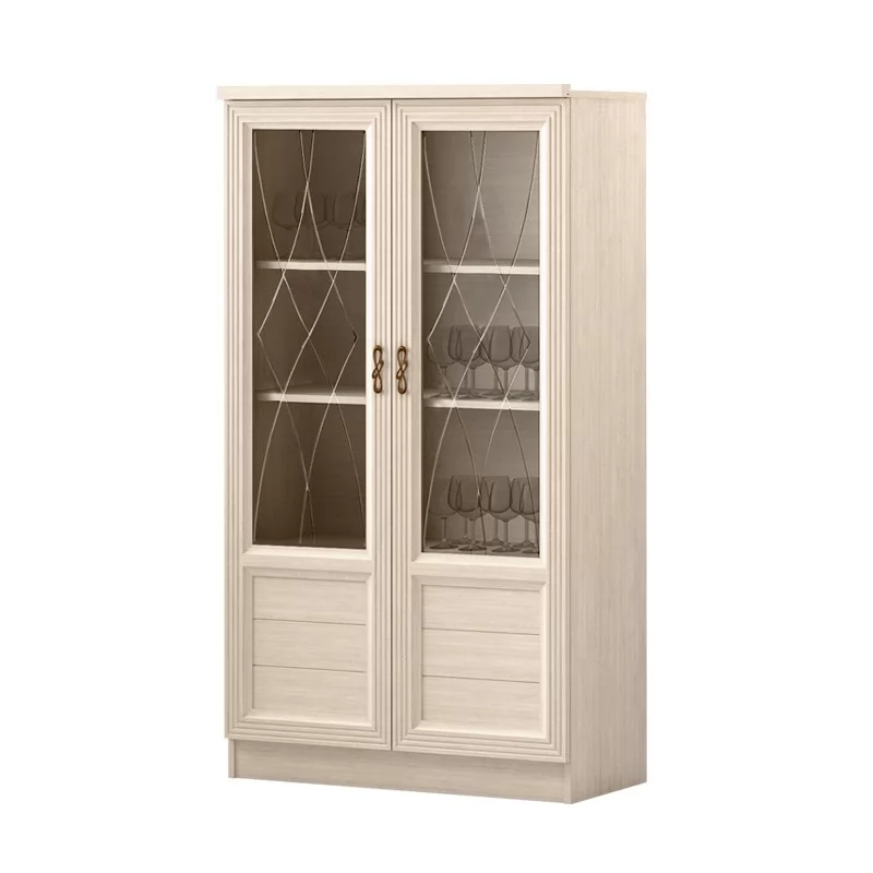 Новая гостиная оснащена качественной фурнитурой и имеет эстетически безукоризненный вид, а изящная, едва заметная гравировка стеклянной вставки приближает ее к лучшим образцам мебельных традиций.