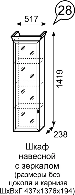 Шкаф навесной с зеркалом «Венеция» №28