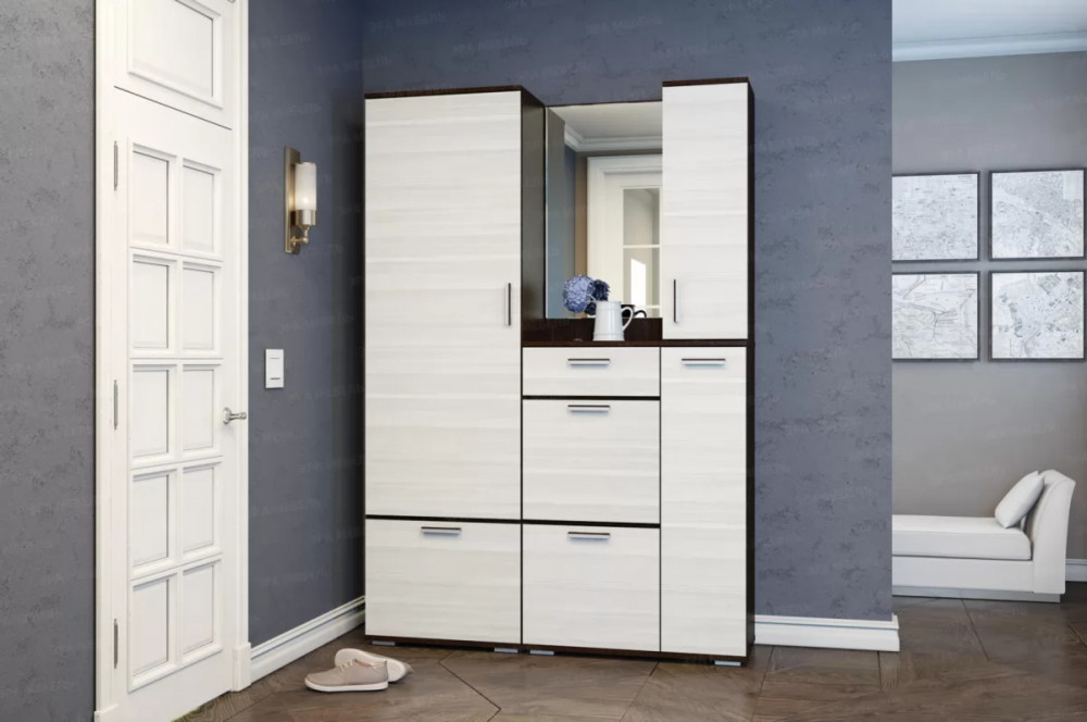 Вешалка с зеркалом В3910 "Ника" Ясень шимо темный/Ясень шимо светлый