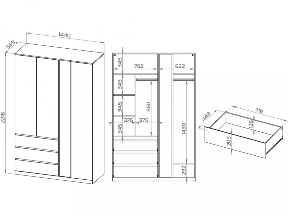 | Размер Ш*В*Г: | 1440х2200х570 мм |