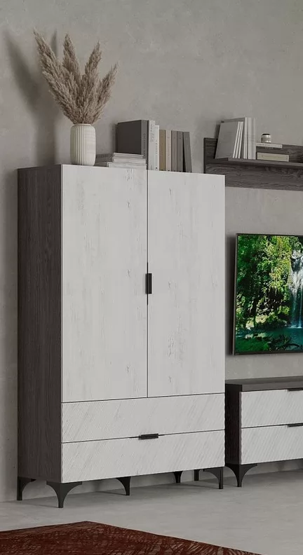 Новые современные цвета: черный ясень - глубокий серый, легкий и одновременно динамичный цвет в сочетании с санторини белым - цвет с древесными линиями, создающими гармоничный контраст. Визуальная легкость, эстетика графики, элегантная окантовка с четкими формами, баланс теплых и холодных оттенков легли в основу дизайна новых модулей.
