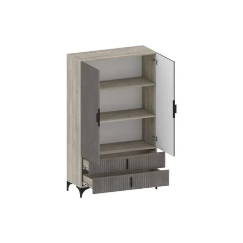 В модульной гостиной серии Шер представлены шкафы высотой 2150 и глубиной 588 мм. Вся мебель изготовлена из высококачественного материала ЛДСП — 16 мм, класса эмиссии Е1. Фасады с оригинальной фрезеровкой изготовлены из МДФ 16 мм под пленкой ПВХ.