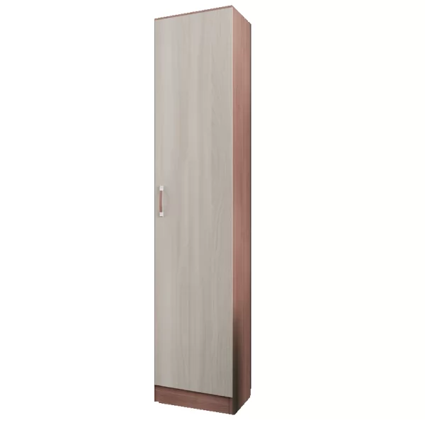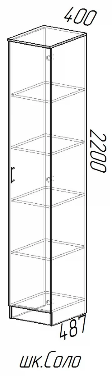 Шкаф "СОЛО" – аккуратное и лаконичное изделие, которое придаст вашей комнате нотки стиля. Конструкция имеет компактный внешний вид, но в то же время позволит вместить как можно больше вещей. Изящный пенал выполнен из экологичного ЛДСП, обладает следующими характеристиками: высота – 2200 мм, глубина – 482 мм, ширина – 400 мм. Во внутренней части конструкции имеется 5 одинаковых отделов с полками, которые закрыты одной общей дверцей.