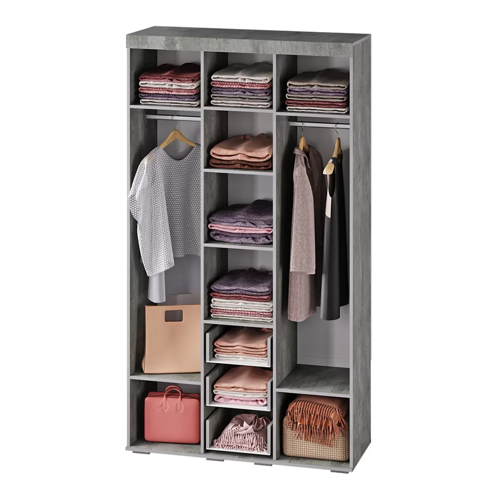 Функционал: семь полок, две штанги и три выкатных ящика.