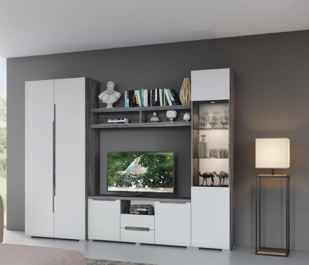 Фасады МДФ под пленкой ПВХ, петли с доводчиком. Особенностью серии является интегрированная ручка, которая придает гостиной индивидуальность и практичность.