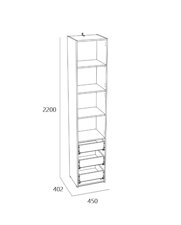 | Размер (ШхГхВ): | 450х402х2200 мм |