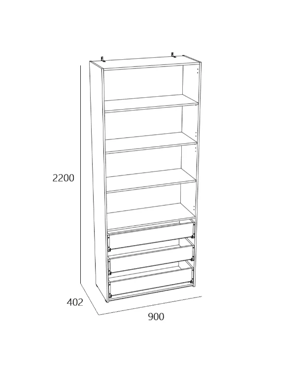 | Размер (ШхГхВ): | 900х402х2200 мм |