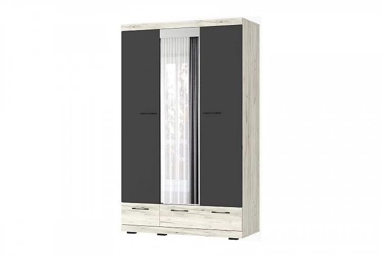 СОНАТА ШСЗ-1350 Шкаф 3дв (1 зерк.), 2ящ (ш1350*г570*в2202мм), ЛДСП дуб крафт белый-антрацит