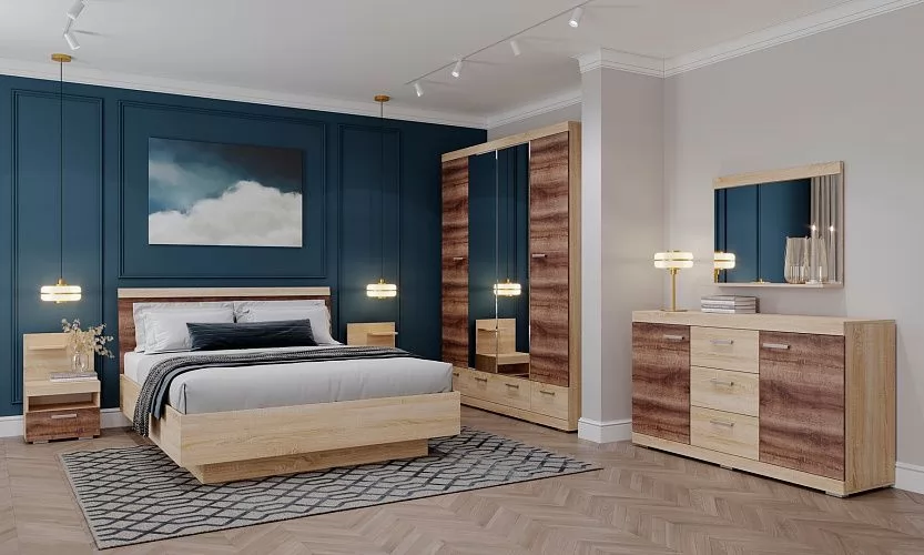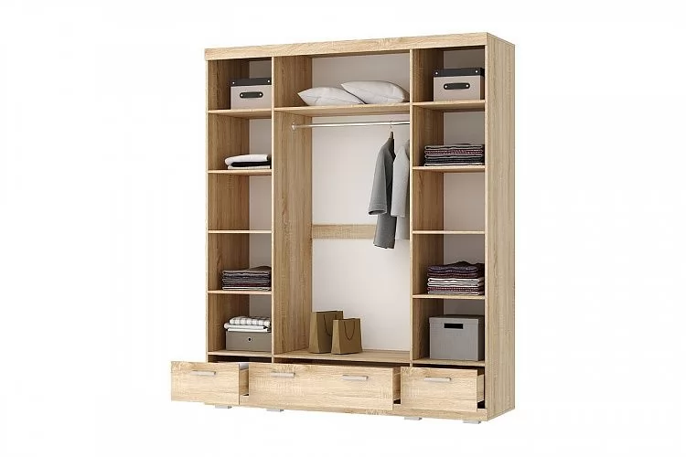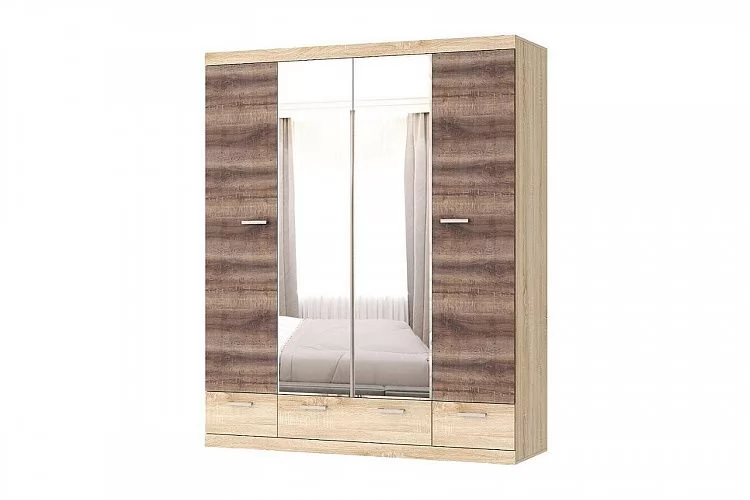 СОНАТА ШСЗ-1800 Шкаф 4дв (2 зерк.), 3ящ (ш1800*г570*в2202мм), ЛДСП дуб сонома-дуб сакраменто
