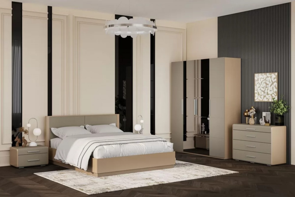 Вива Шкаф распашной ШР-3 1 зеркало Латте/Текстиль