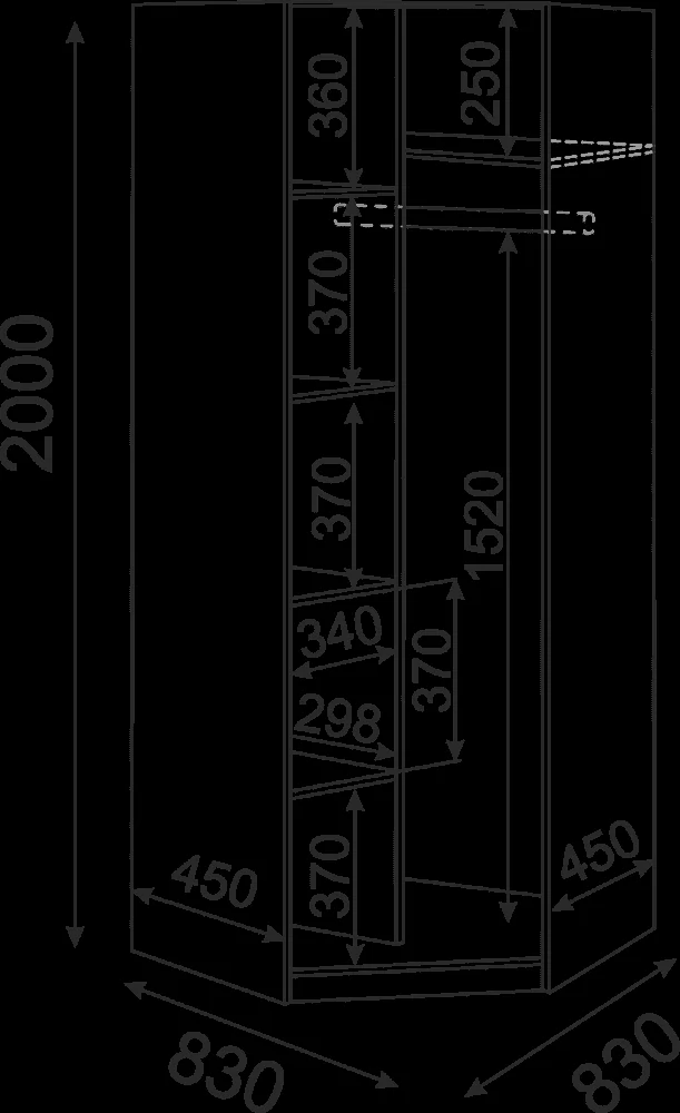 | *Размеры (ВхШхГ), мм: | 2000х830х830 мм |