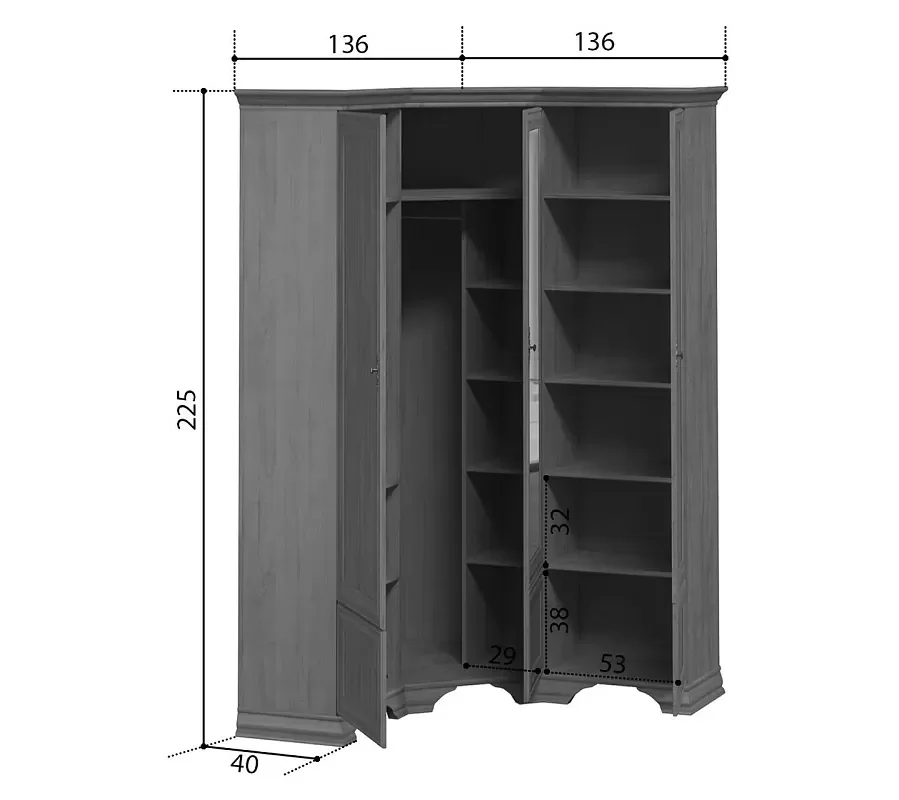 Шкаф угловой Kentaki S320-SZFN5D каштан
