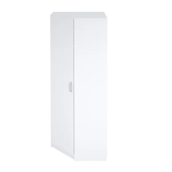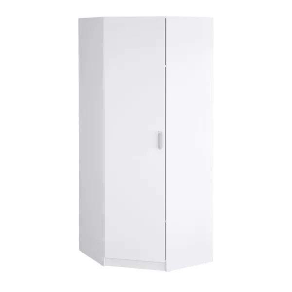 Шкаф такой формы отлично подойдет для соединения шкафов, размещенных по двум стенам – без потери пространства. Хотя вполне может существовать и самостоятельно, или же дополненный открытыми полками (Стеллаж угловой)