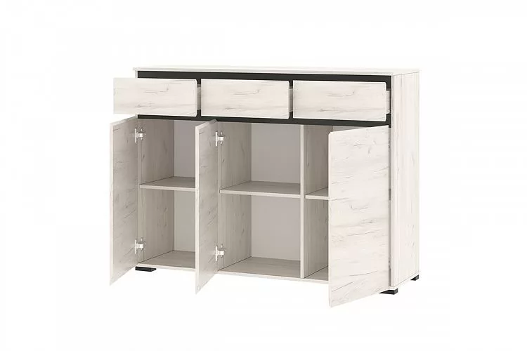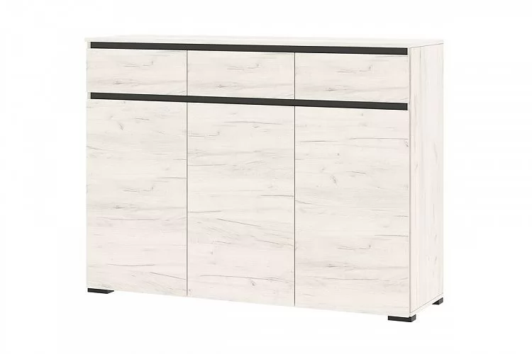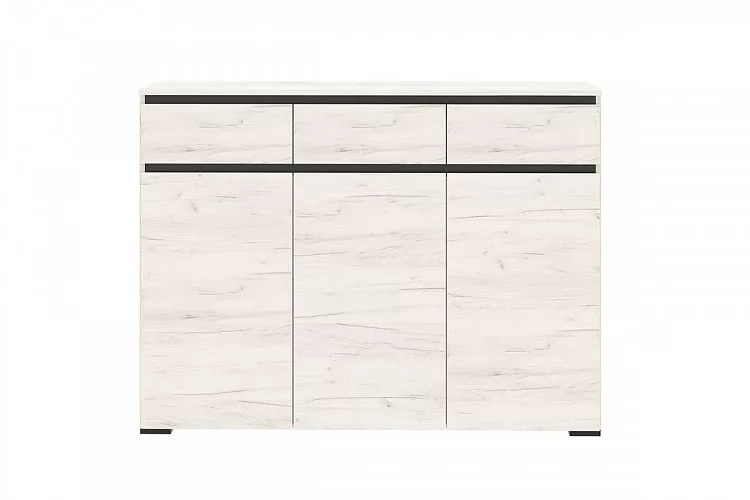 ГРЕТТА Комод 3С3Я 3дв, 3ящ (ш1350*г411*в1011мм), ЛДСП дуб крафт белый-антрацит/ЛДСП дуб крафт белый